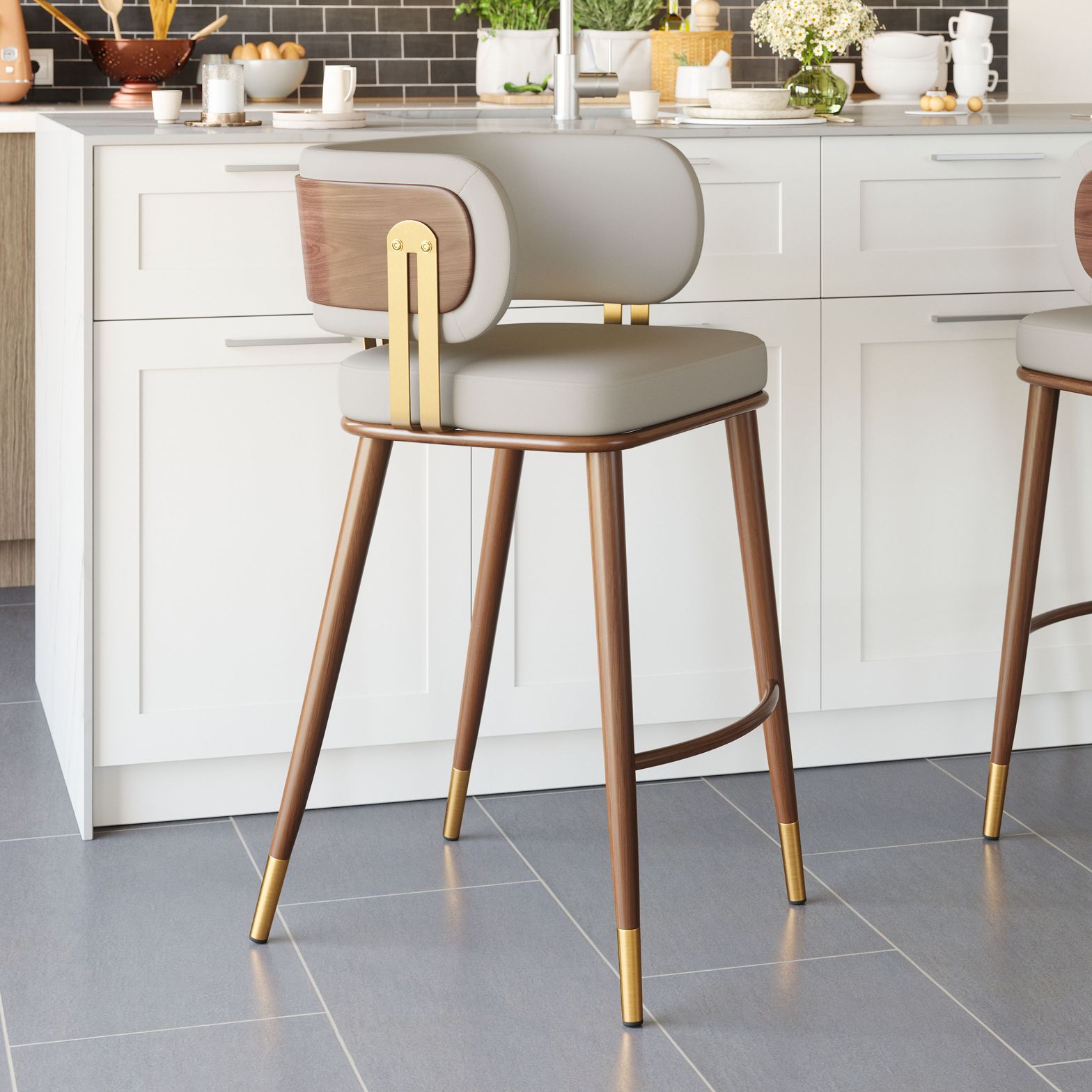 Brew Barstool Beige & Walnut