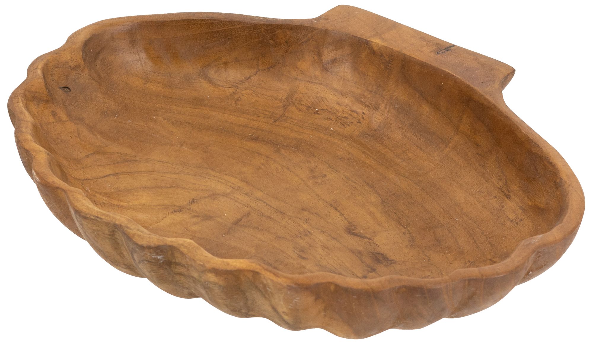 Brown Teak Wood Plate w/ Seashell Design - 11.8"W x 9.8"L x 2.2"H