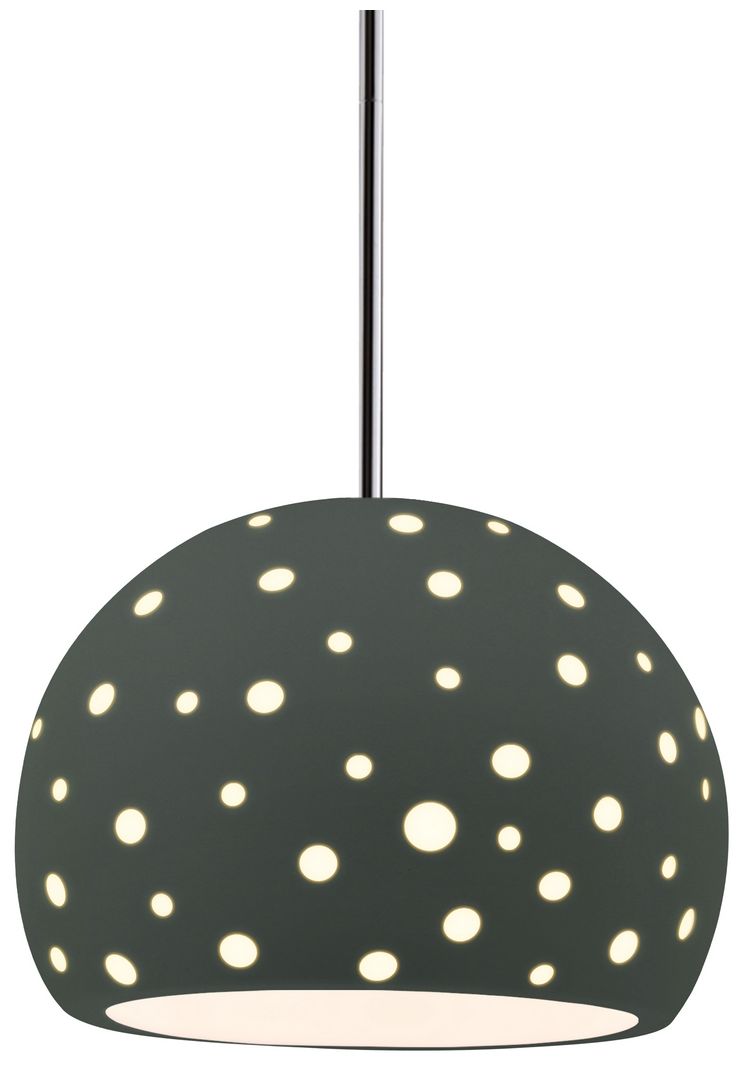 Perforated Globe 7"W Matte Green, Polished Chrome LED Pendant - Rigid Stem