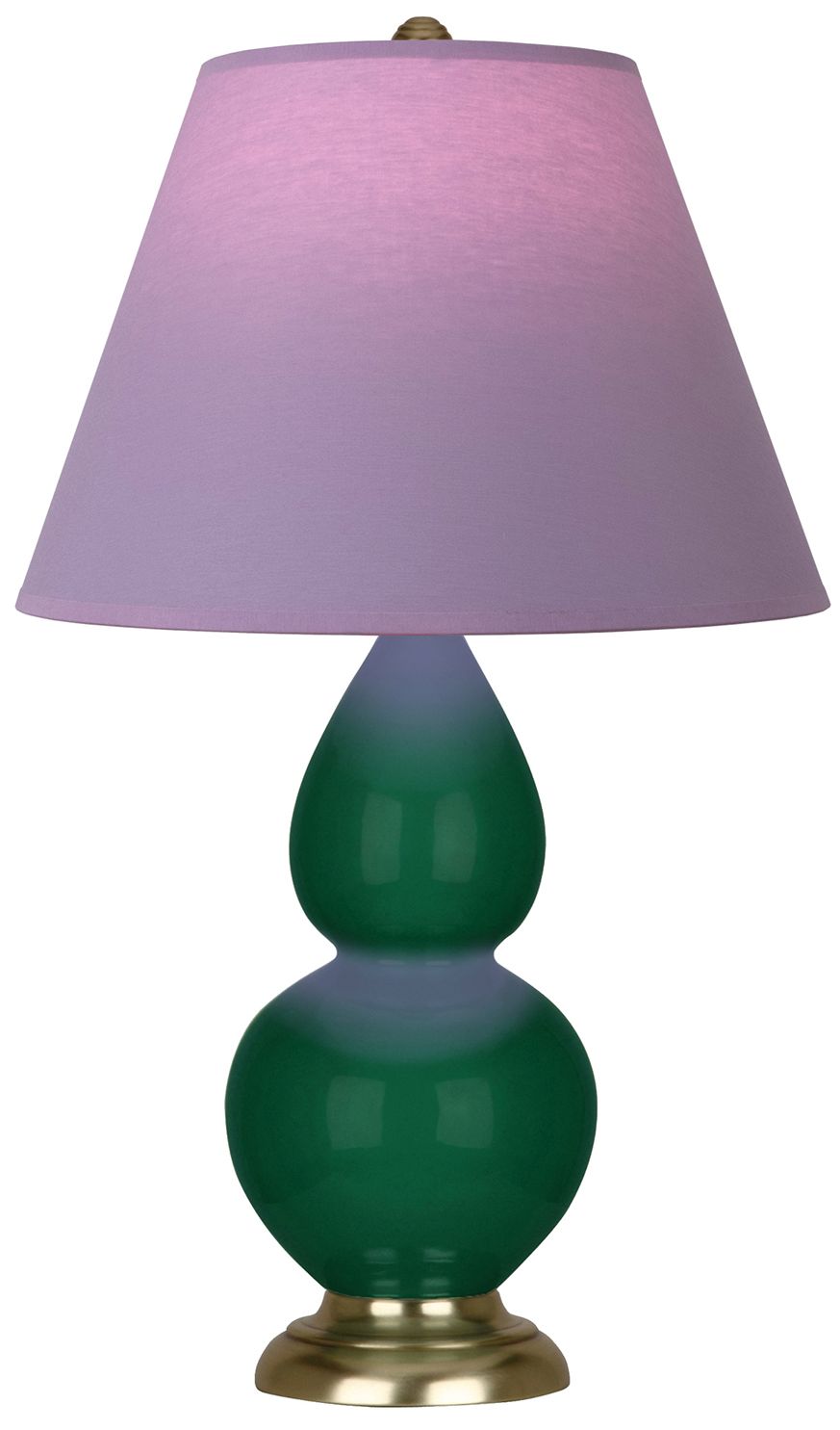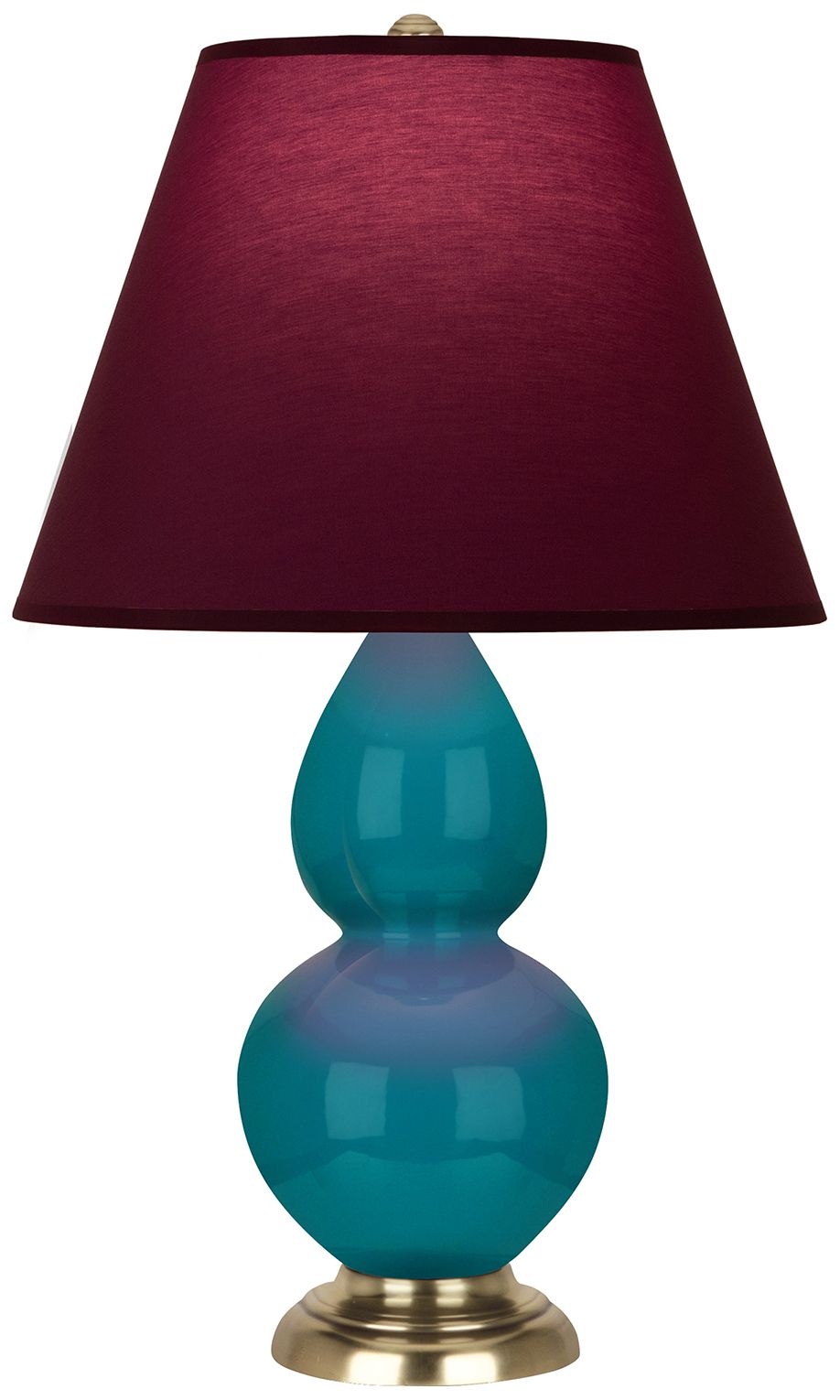 Double Gourd 22.75"H Peacock And Brass Lamp w/ Plum And Lavender Shade