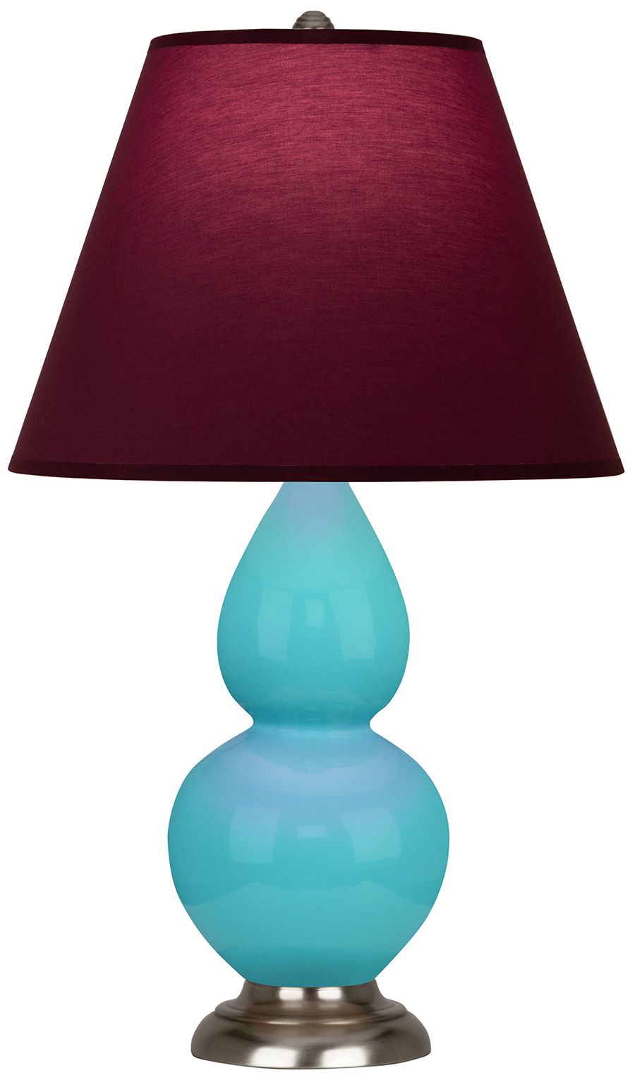 Double Gourd 23"H Egg Blue And Silver Lamp w/ Plum And Lavender Shade
