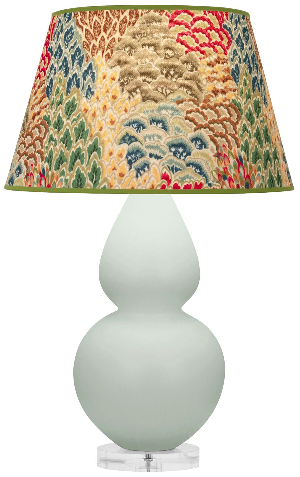 Double Gourd 30"H Matte Celadon And Lucite Lamp w/ Fall Floral Shade