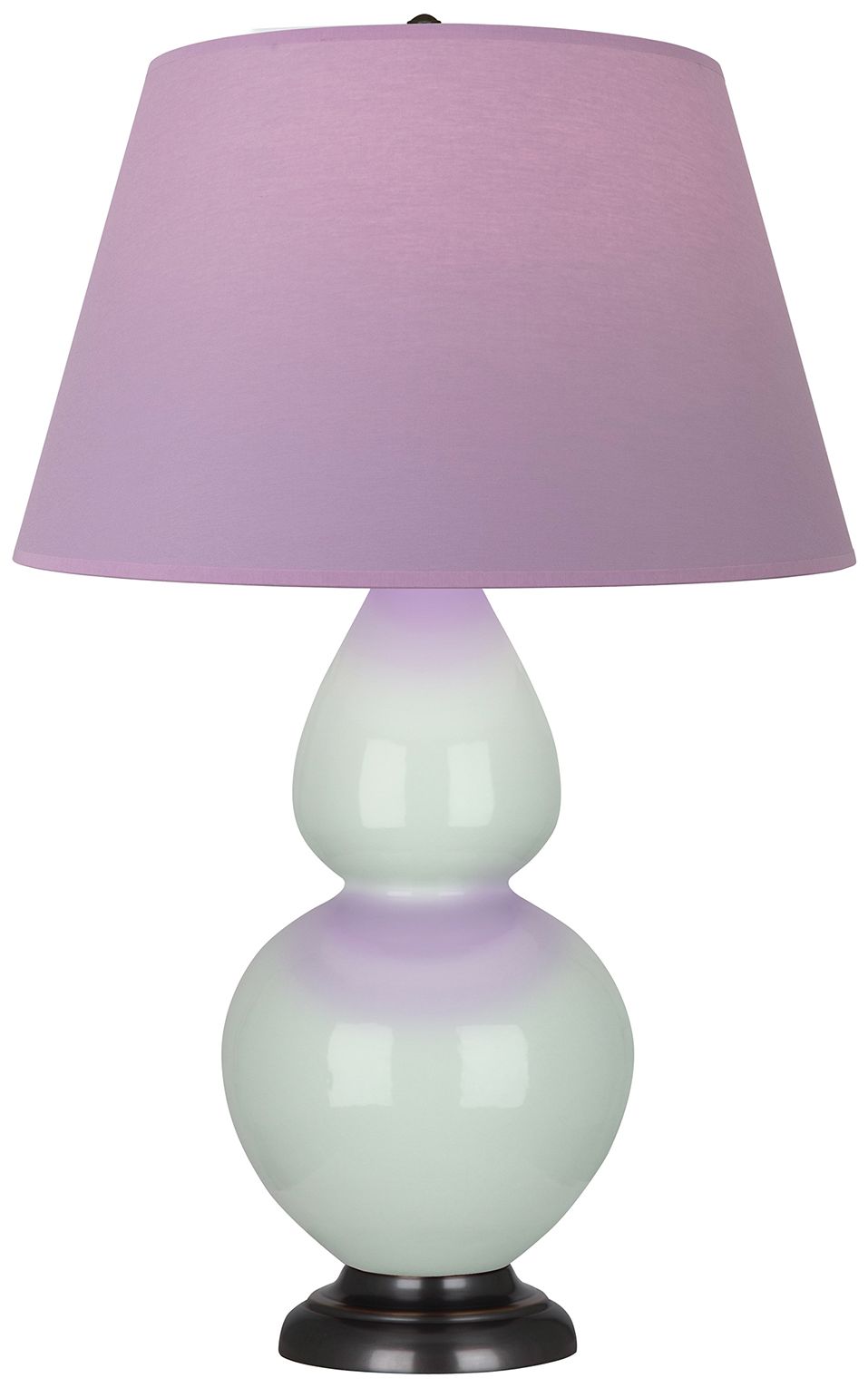 Double Gourd 31"H Celadon And Bronze Lamp w/ Lavender And Plum Shade