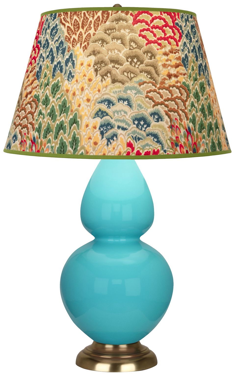 Double Gourd 31"H Egg Blue And Brass Table Lamp w/ Fall Floral Shade