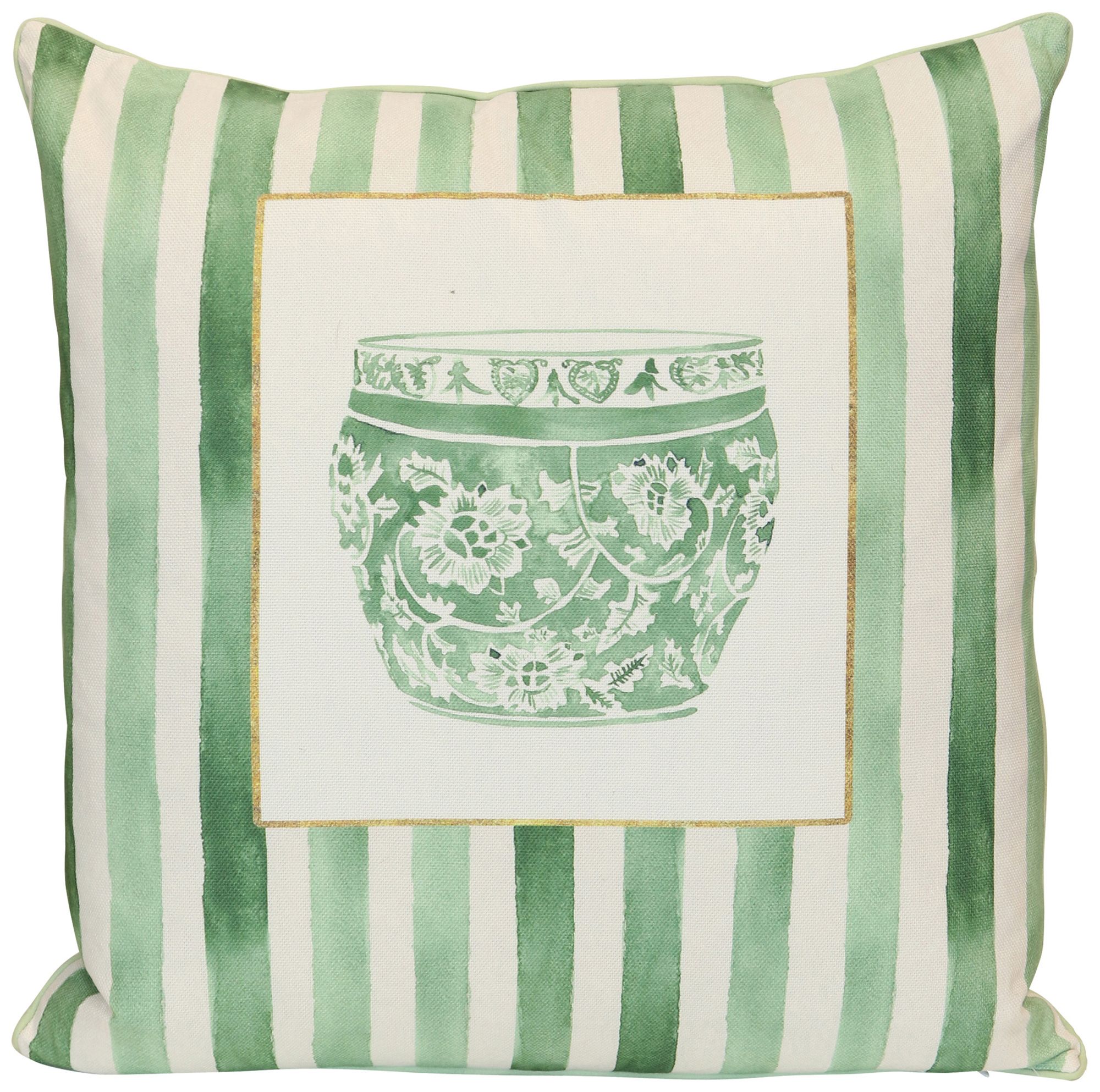 Porcelain Stripe 24" x 24" Green, Soft White Pillow