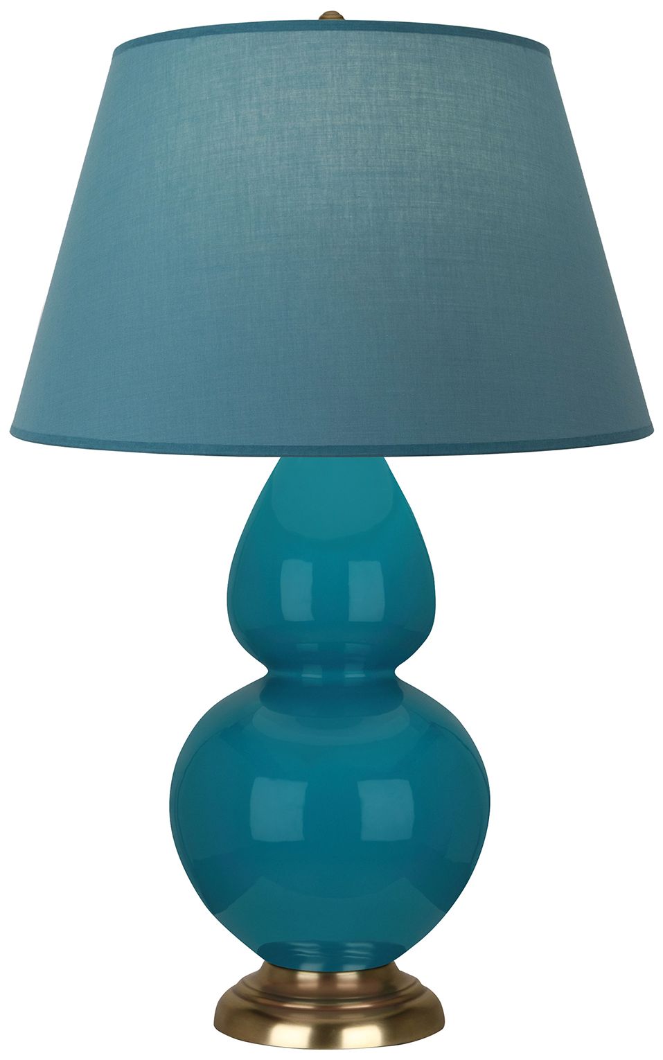Double Gourd 31"H Peacock And Brass Lamp w/ Bright Blue And Gray Shade