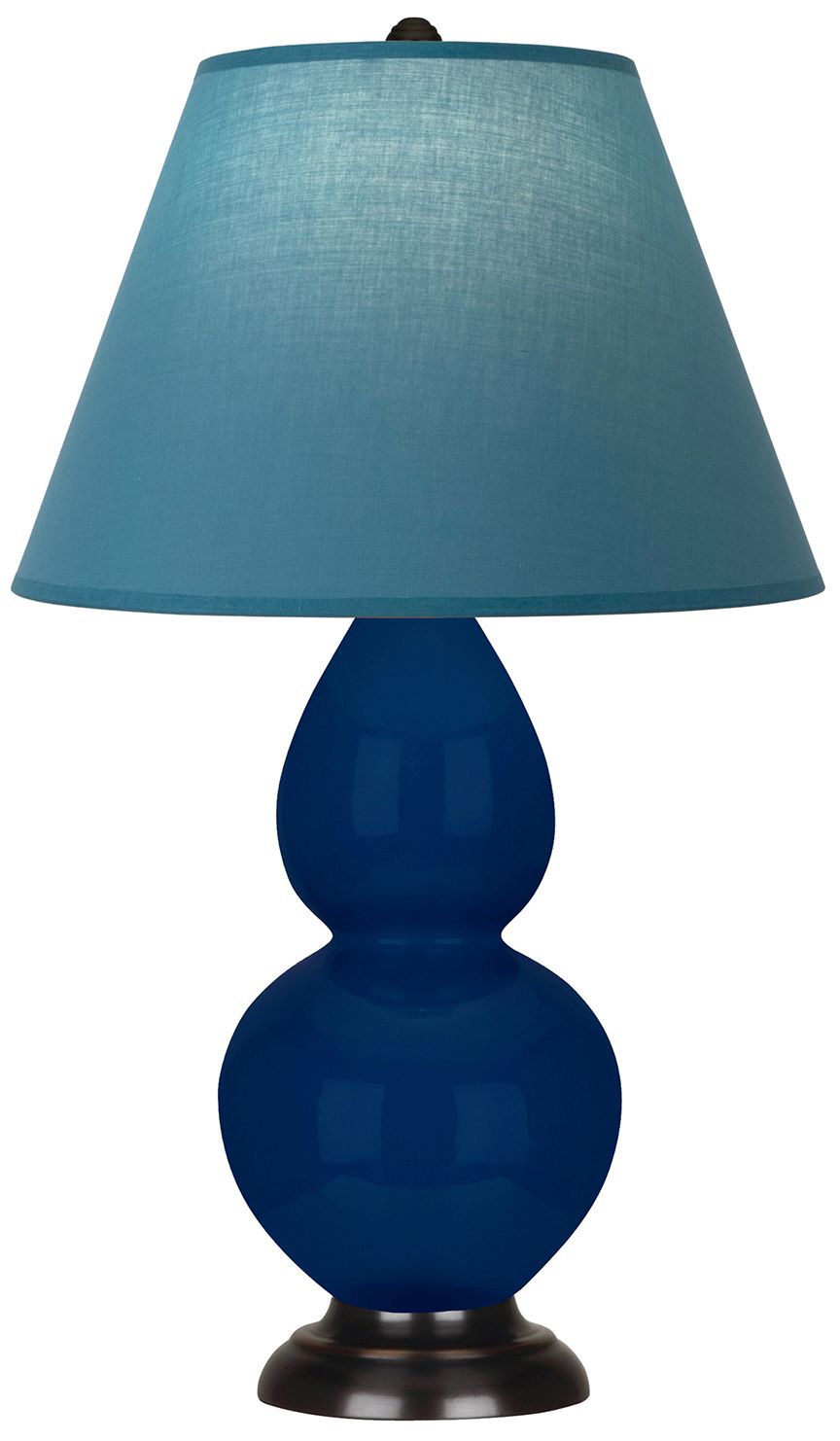 Double Gourd 23"H Cobalt And Bronze Lamp w/ Bright Blue And Gray Shade