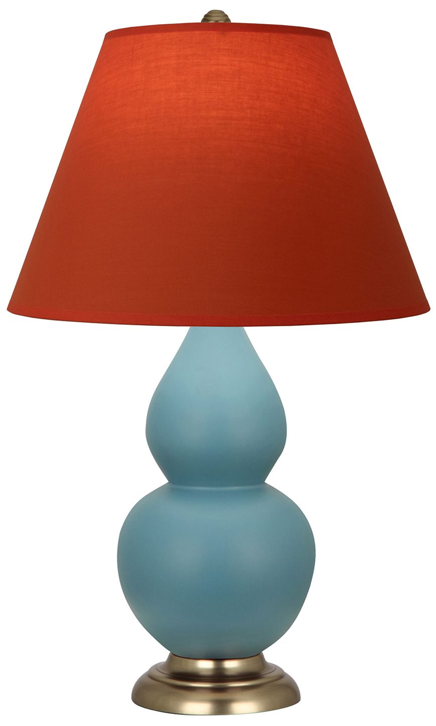 Double Gourd 23"H Steel Blue And Brass Lamp w/ Tangerine And Taupe Shade