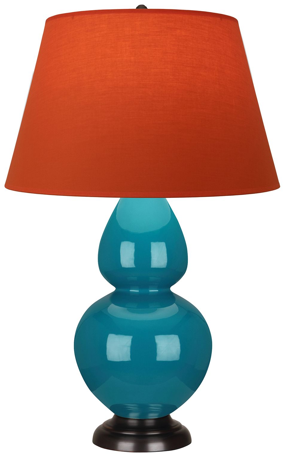 Double Gourd 31"H Peacock And Bronze Lamp w/ Tangerine And Taupe Shade