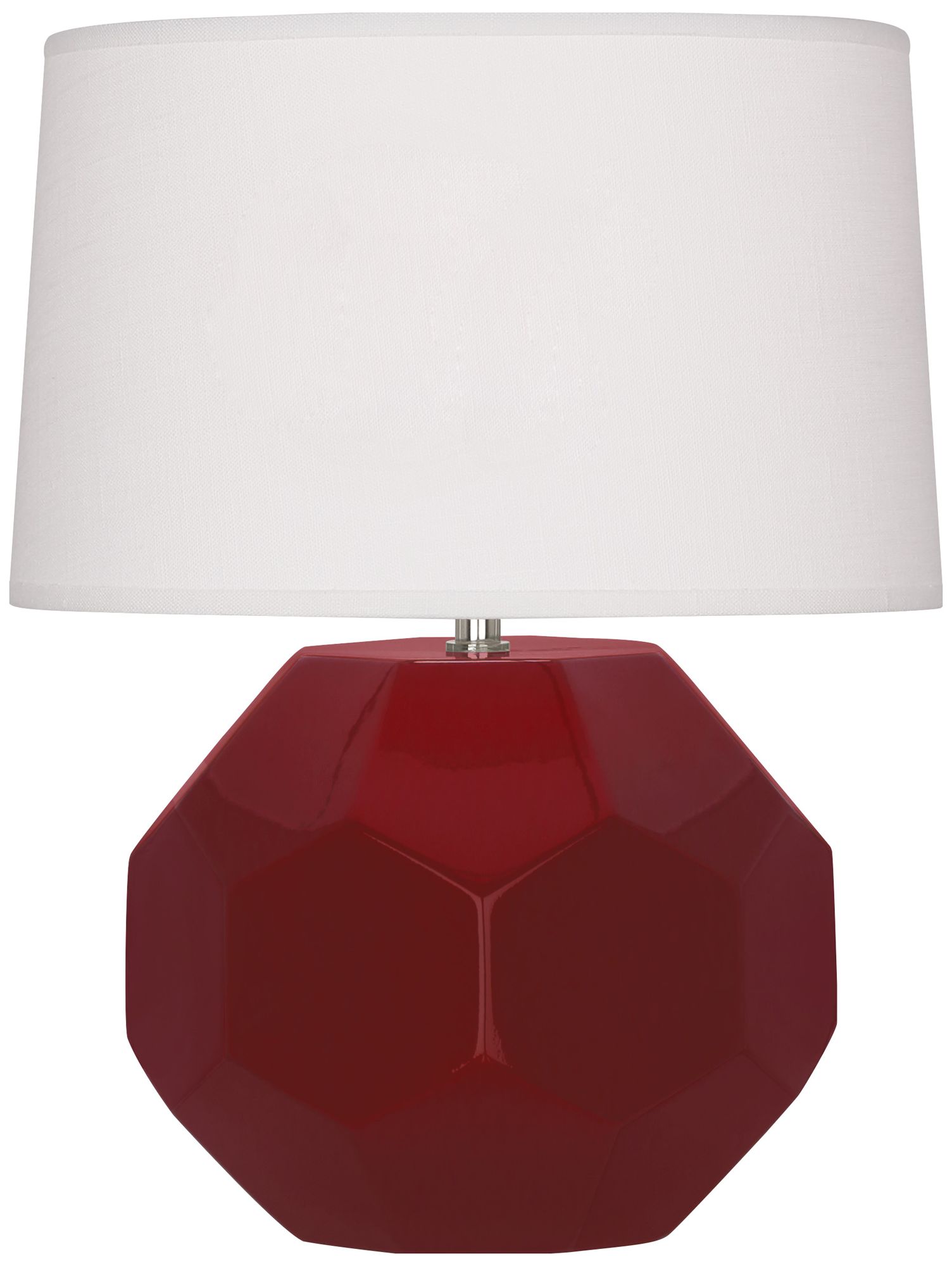 Small Franklin 16" High Burgundy Glazed Accent Lamp with Off White Shade