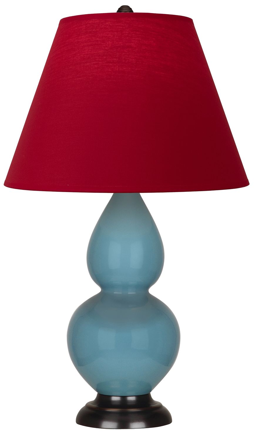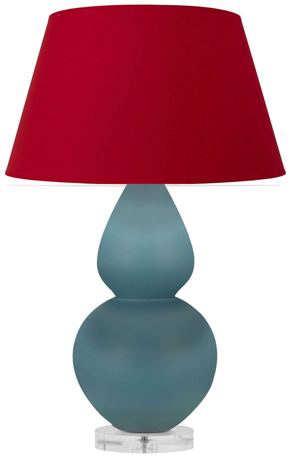 Double Gourd 30"H Steel Blue And Lucite Lamp w/ Black And Red Shade