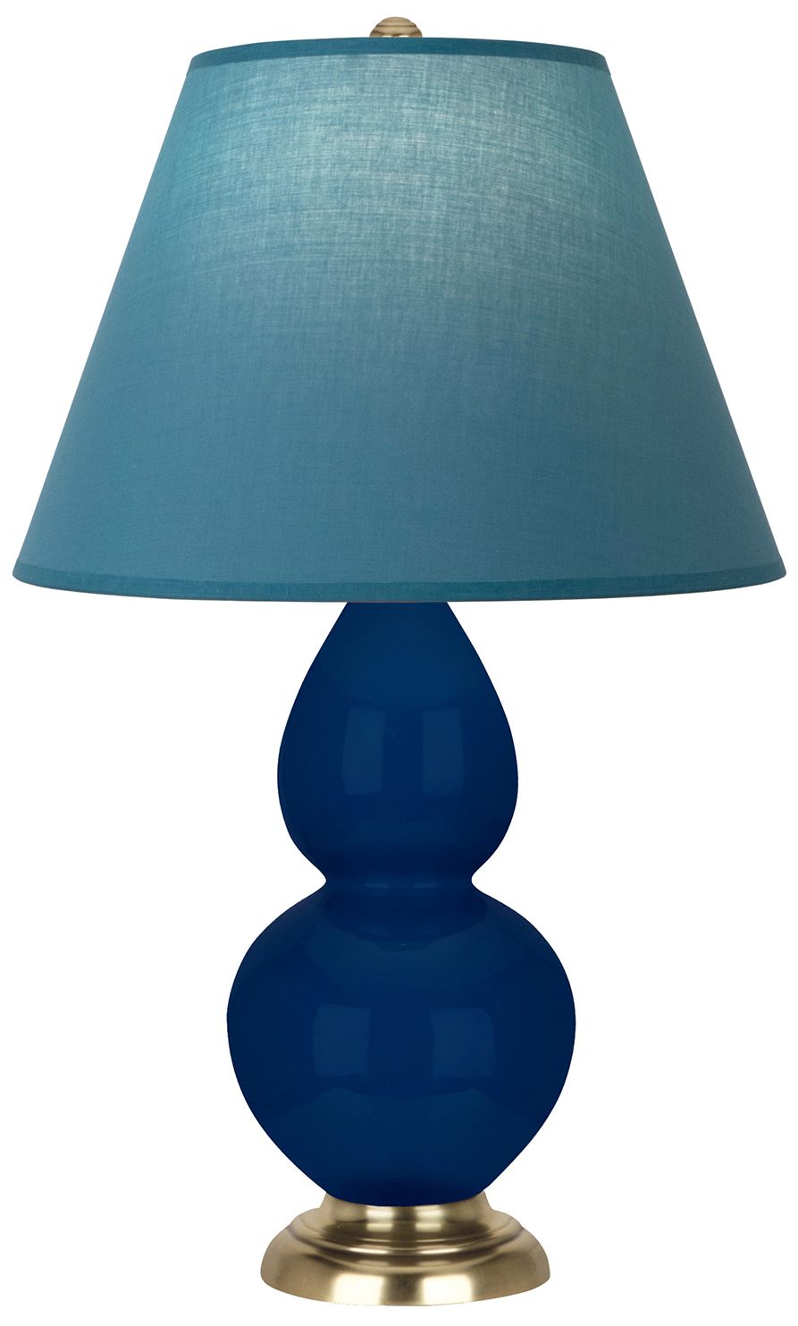 Double Gourd 23"H Cobalt And Brass Lamp w/ Bright Blue And Gray Shade