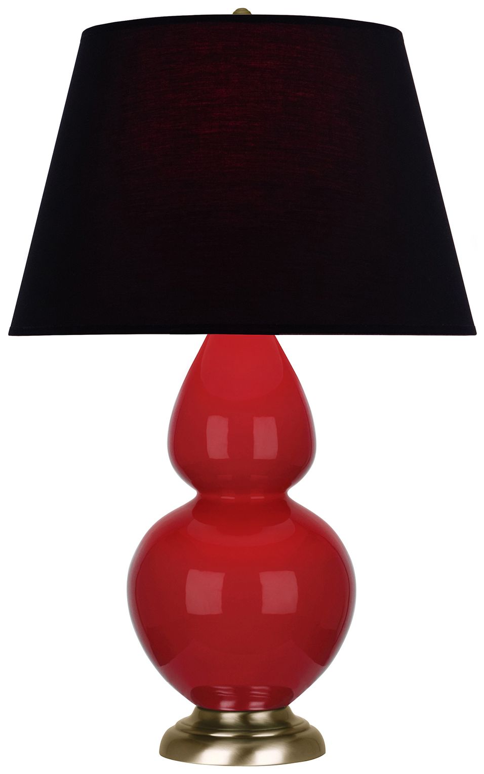 Double Gourd 31"H Ruby Red And Brass Table Lamp w/ Ink And Rose Shade