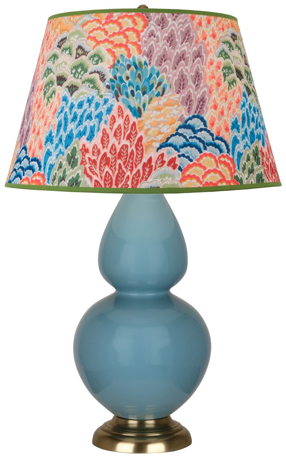 Double Gourd 22.75"H Baby Blue And Brass Lamp w/ Fall Floral Shade