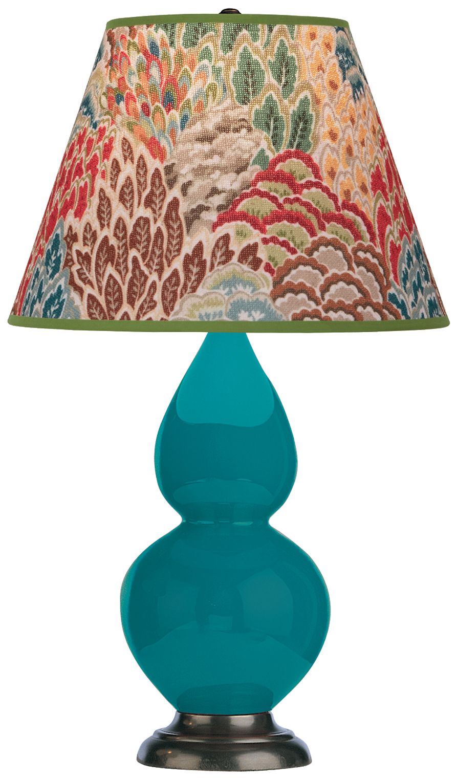 Double Gourd 31"H Peacock And Bronze Lamp w/ Bright Blue And Gray Shade