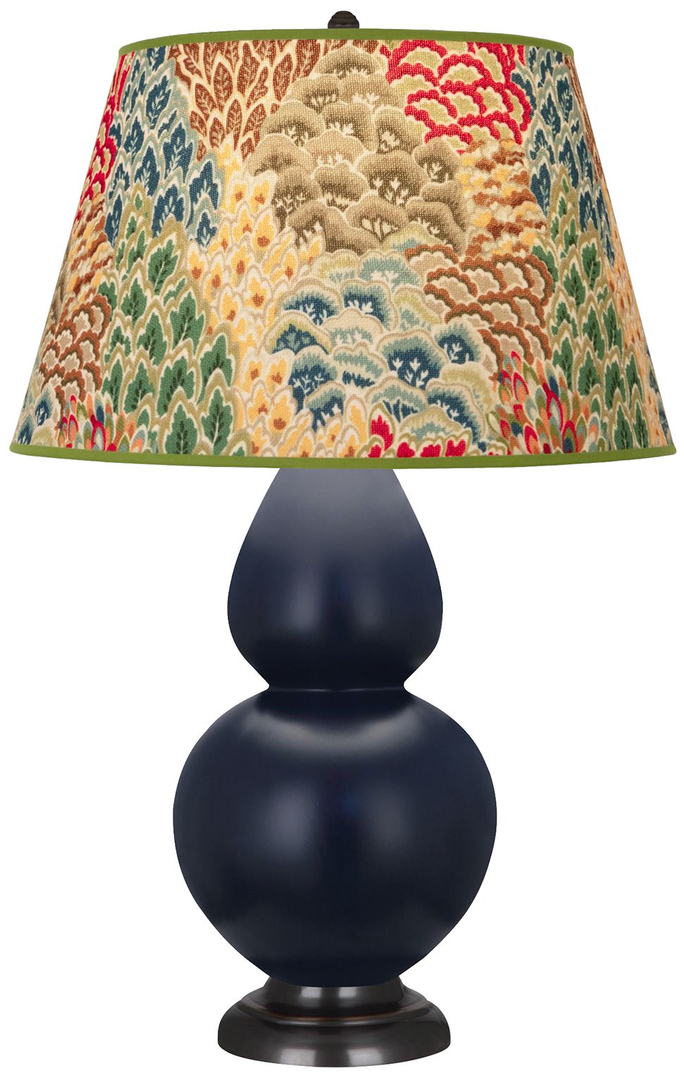 Double Gourd 31"H Matte Blue And Bronze Lamp w/ Fall Floral Shade