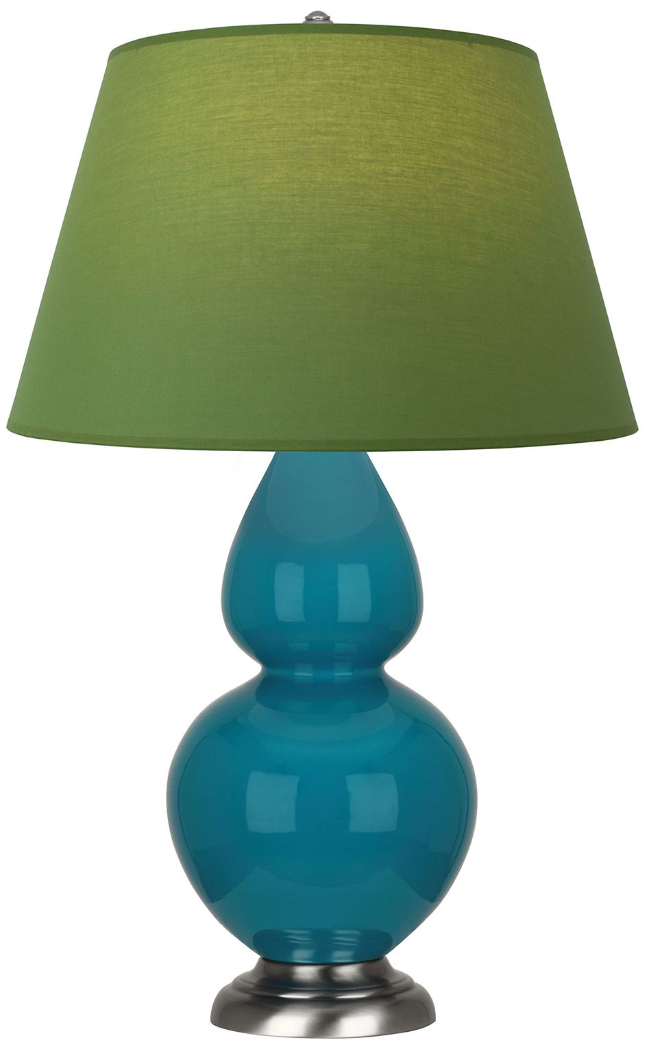 Double Gourd 31"H Peacock And Silver Lamp w/ Tea Green And Taupe Shade