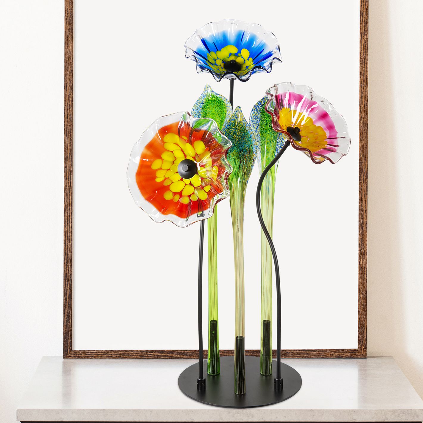Dale Tiffany 52" Tall Fiore Bloom Red Hand Blown Glass Bird Bath / Feeder