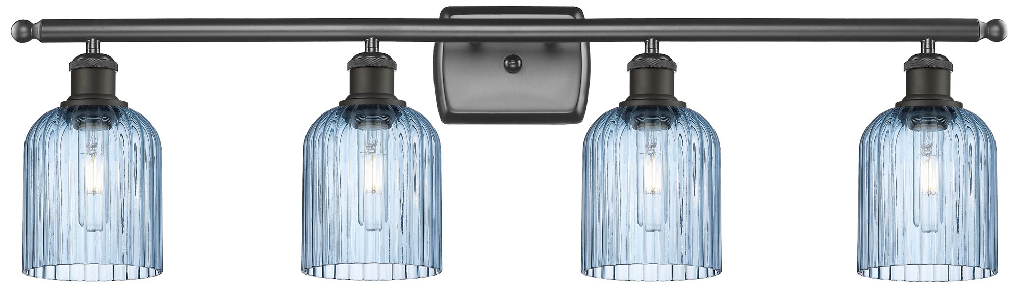 Bridal Veil 32"W 4 Light Oil Rubbed Bronze Bath Light With Blue Shade