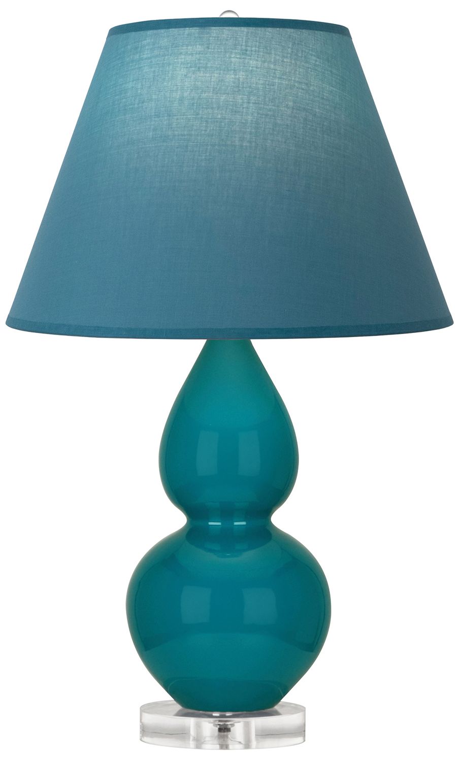 Double Gourd 22"H Peacock And Lucite Lamp w/ Bright Blue And Gray Shade