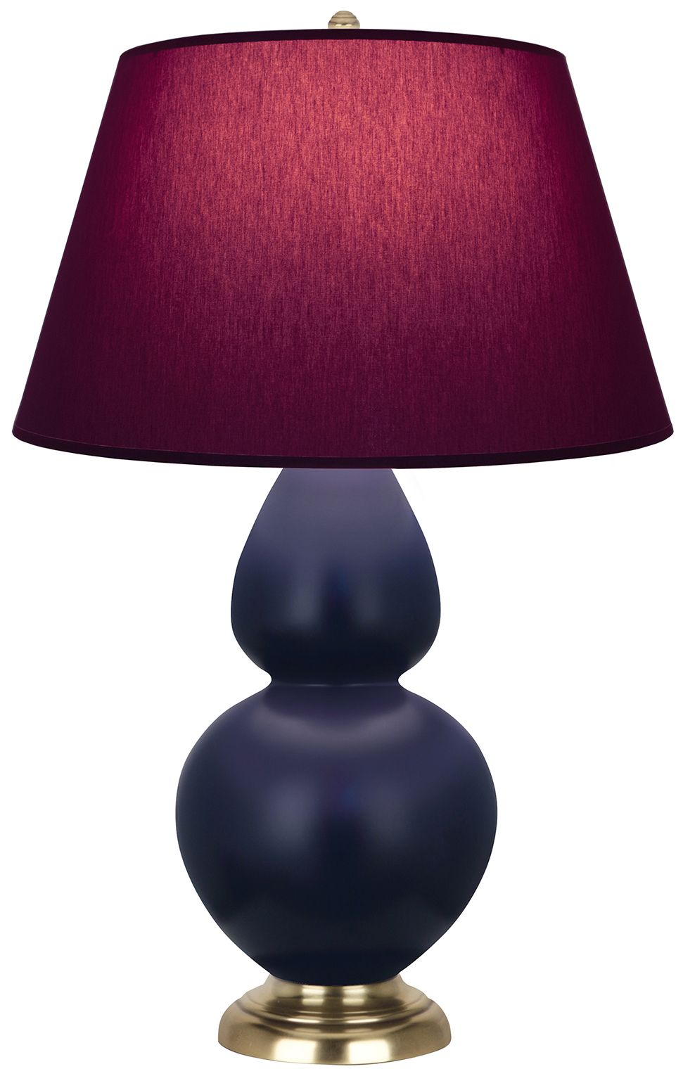 Double Gourd 31"H Matte Blue And Brass Lamp w/ Plum And Lavender Shade