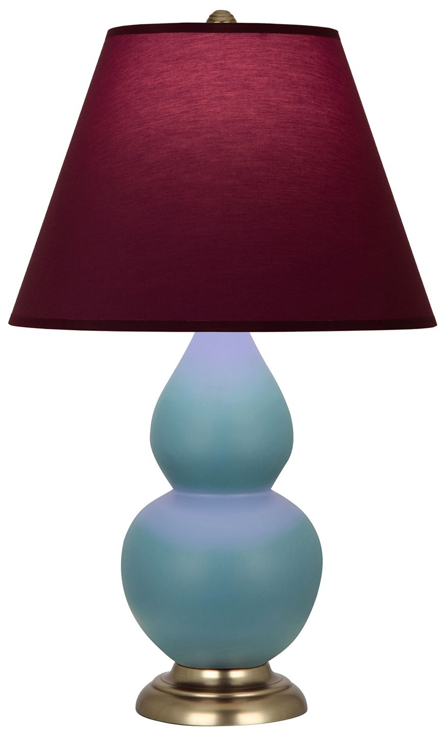 Double Gourd 23"H Steel Blue And Brass Lamp w/ Plum And Lavender Shade