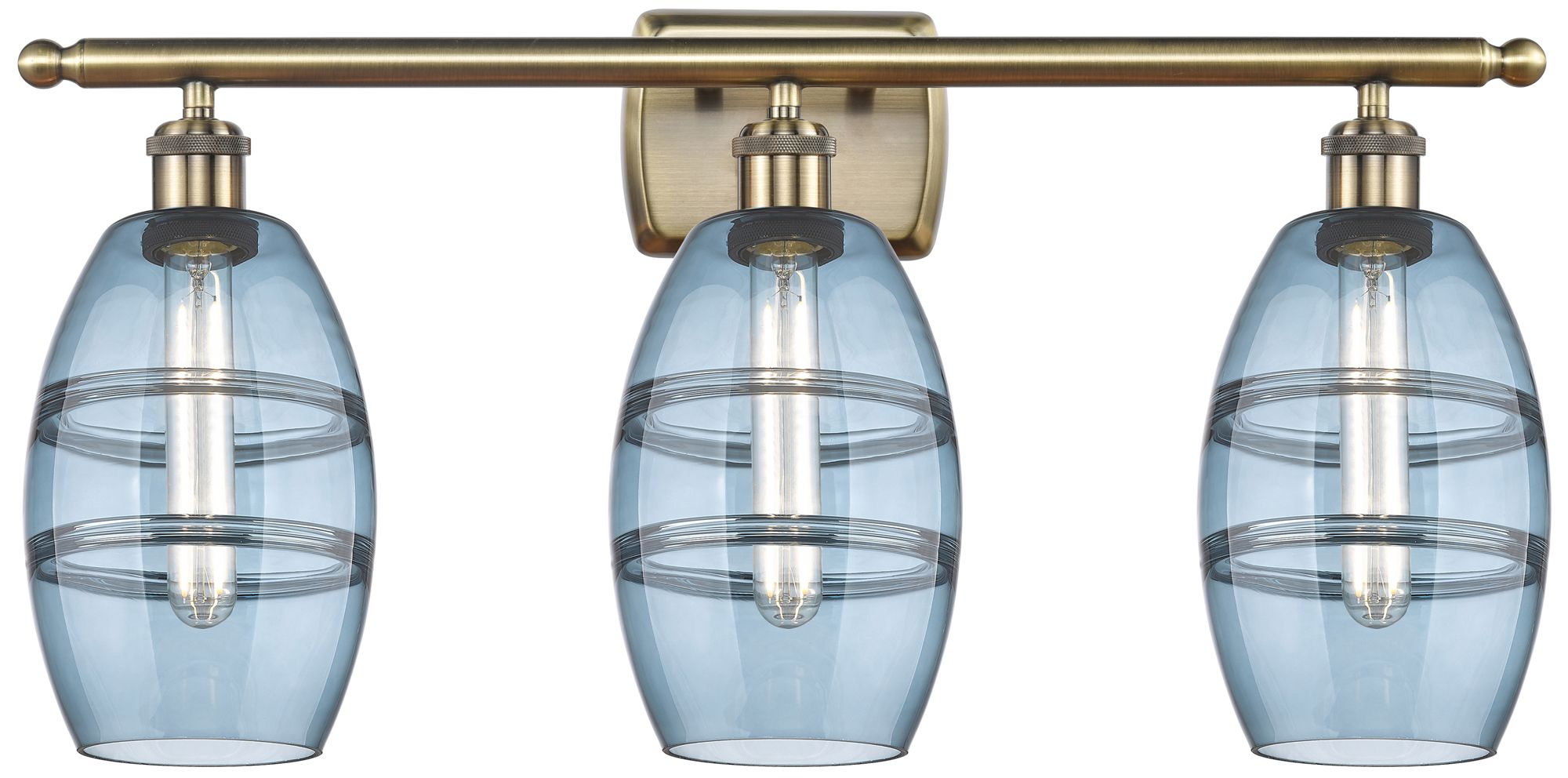 Ballston Vaz 25.88"W 3 Light Antique Brass Bath Light w/ 6" Blue