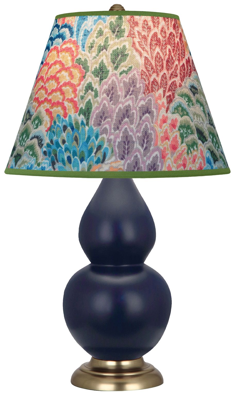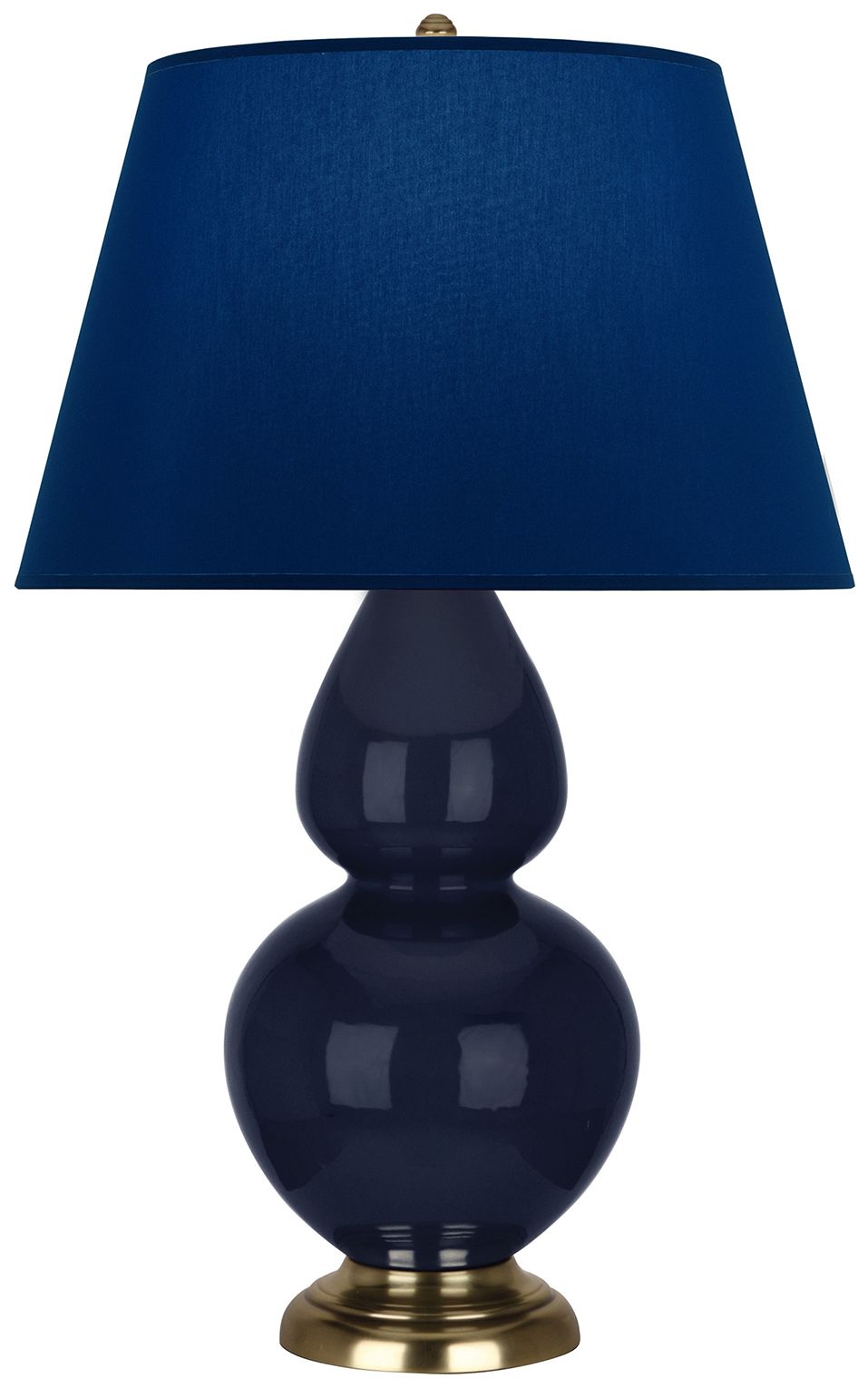 Double Gourd 31"H Blue And Brass Table Lamp w/ Navy And Gray Shade