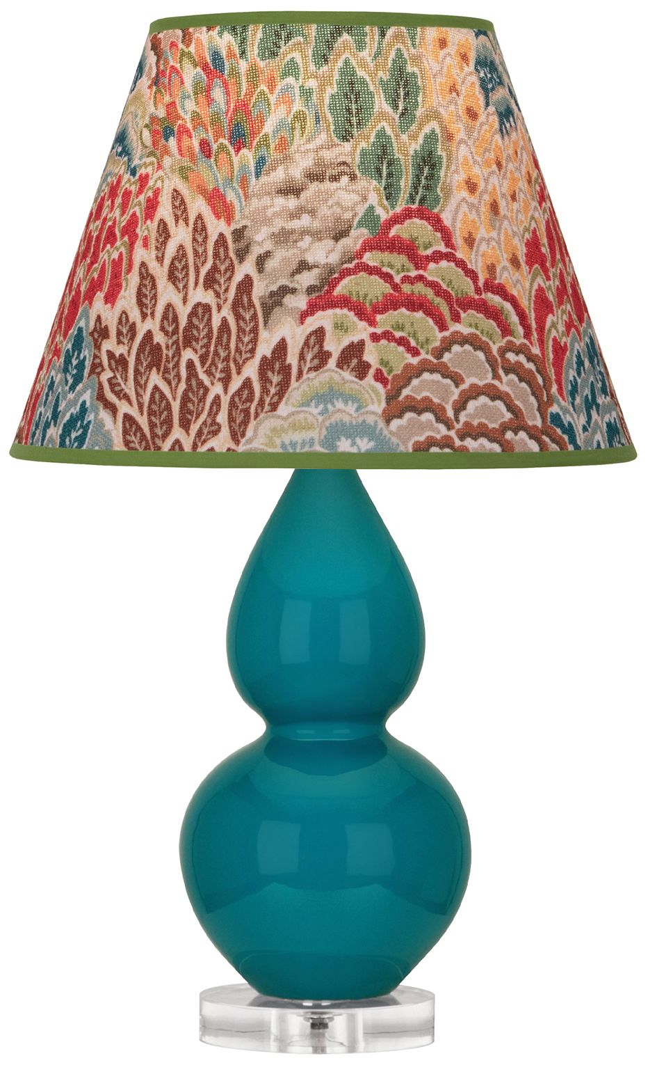 Double Gourd 22"H Peacock And Lucite Accent Lamp w/ Floral Shade