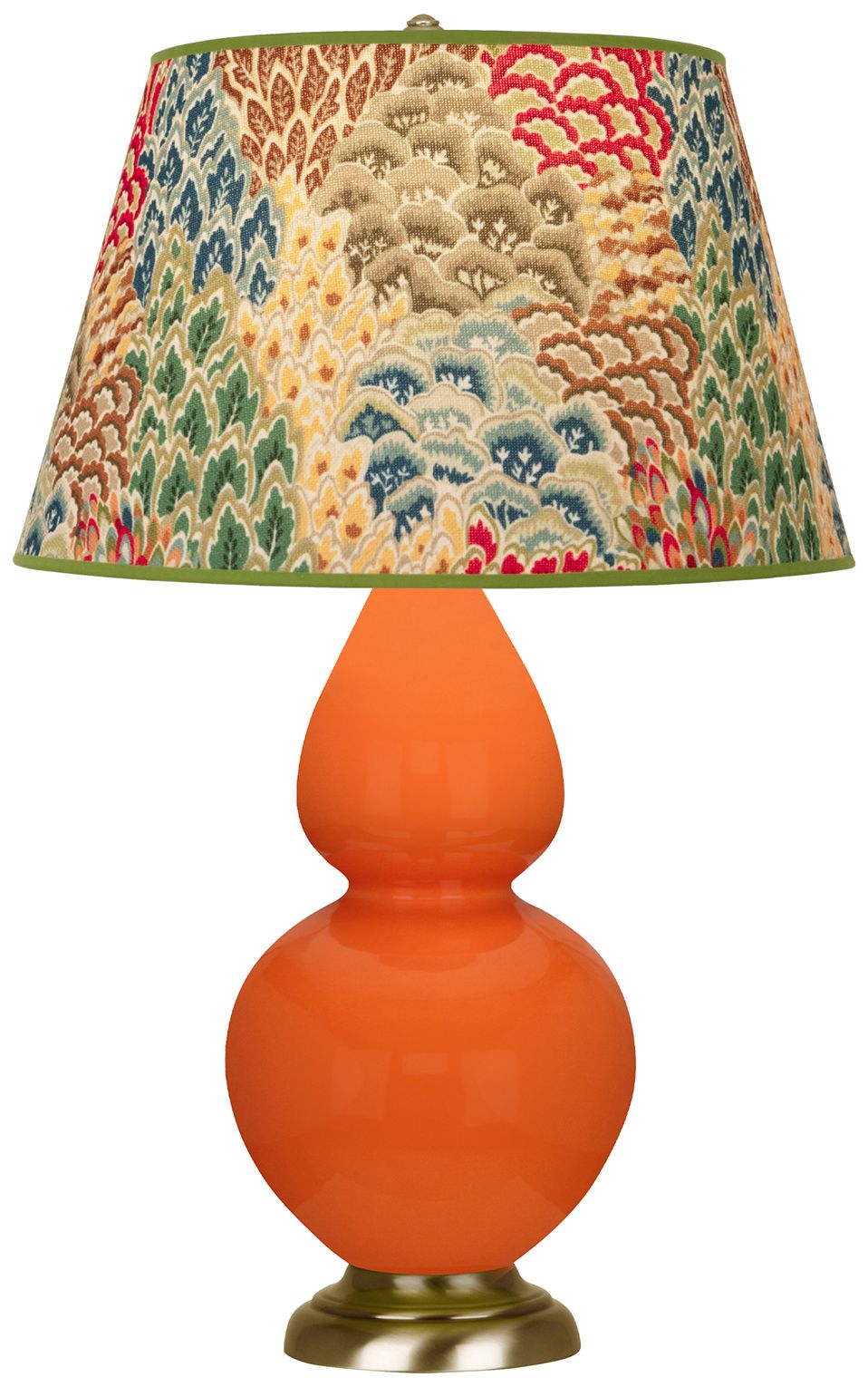 Double Gourd 31"H Pumpkin And Brass Table Lamp w/ Fall Floral Shade