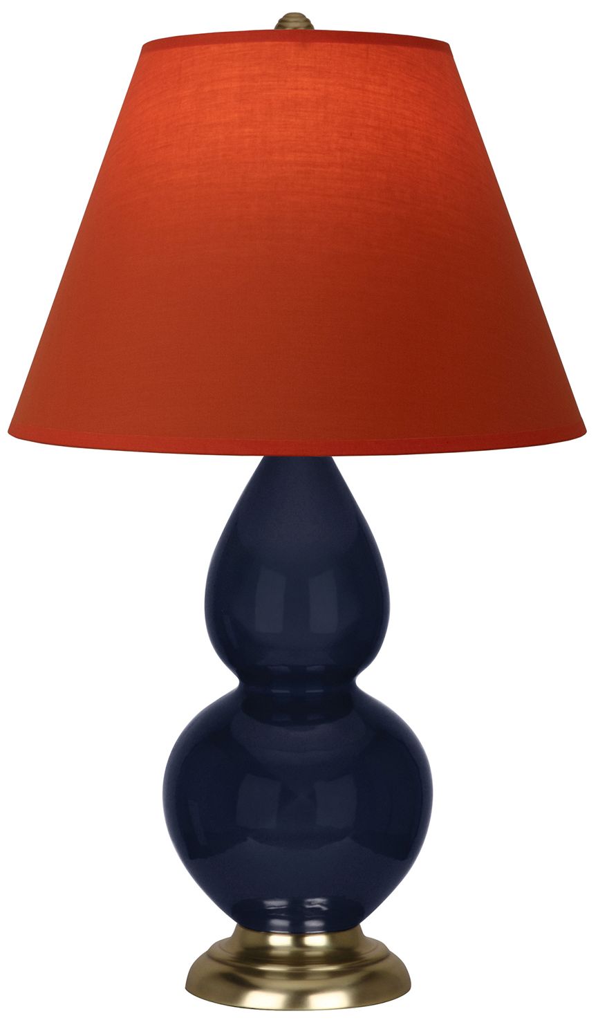 Double Gourd 22.75"H Blue And Brass Lamp w/ Tangerine And Taupe Shade