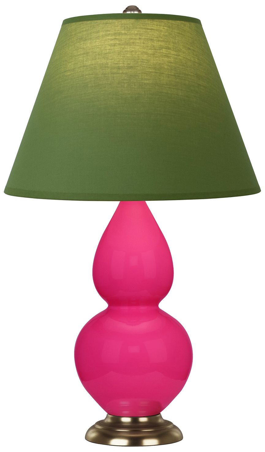 Double Gourd 22.75"H Razzle Rose And Brass Lamp w/ Tea And Taupe Shade