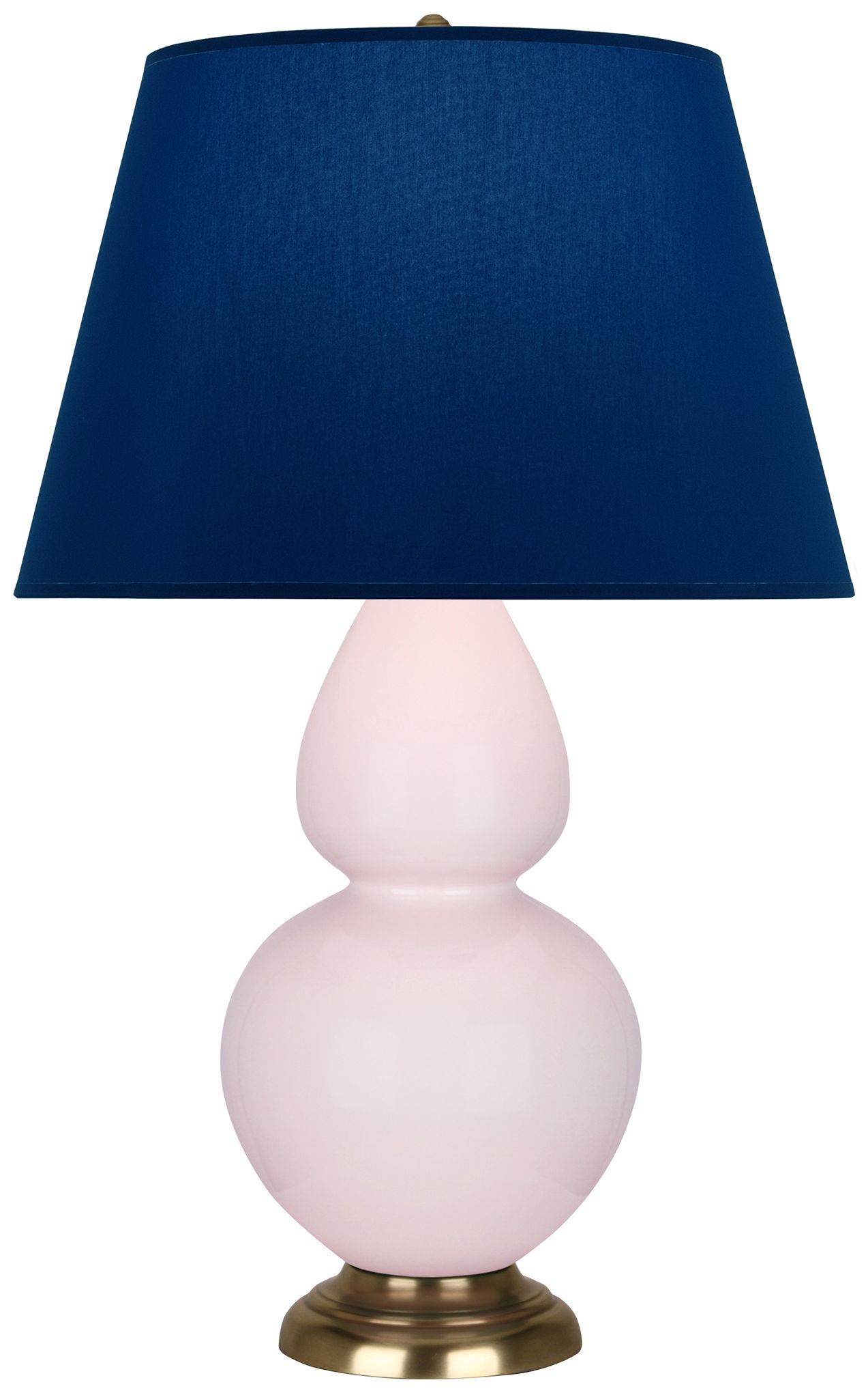 Double Gourd 31"H Rose Water Glazed Brass Table Lamp w/ Navy Shade