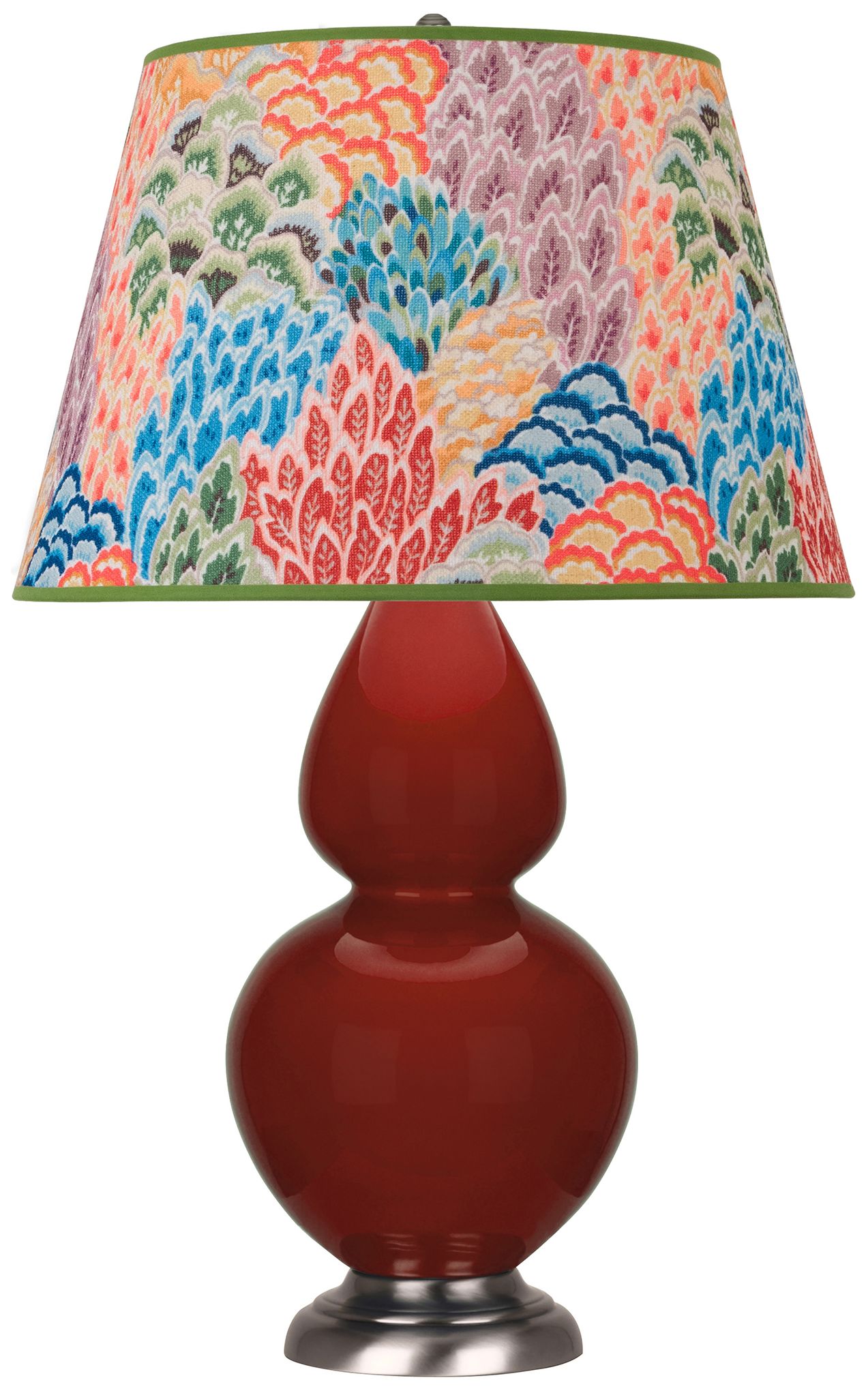 Double Gourd 31"H Oxblood Glazed Silver Table Lamp w/ Spring Floral Shade