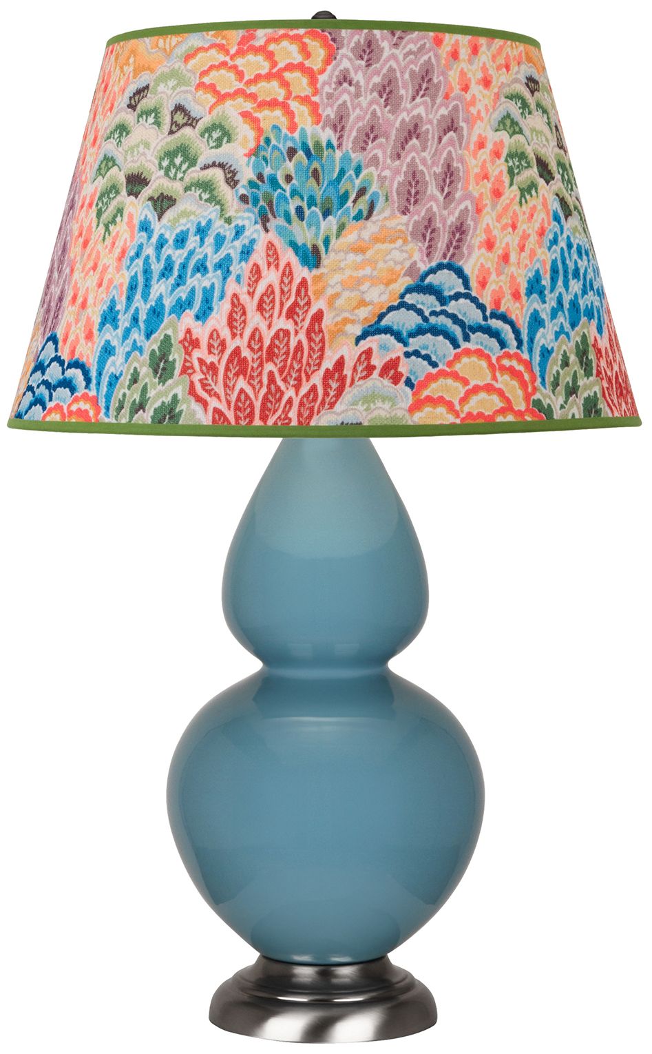 Double Gourd 22"H Sangria And Lucite Lamp w/ Bright Blue And Gray Shade
