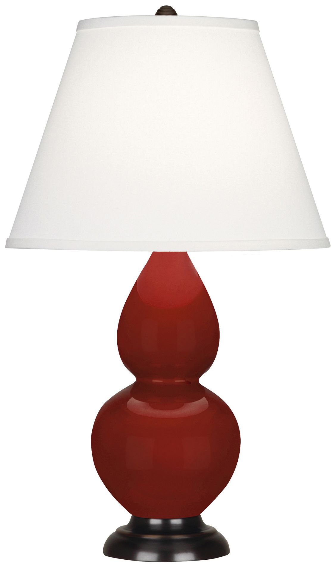Small Double Gourd 22.75"H Oxblood Antique Silver Lamp w/ Black Red Shade