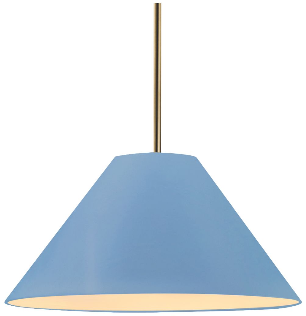 Radiance Avola 15"W Sky Blue, Antique Brass LED Pendant - White Cord
