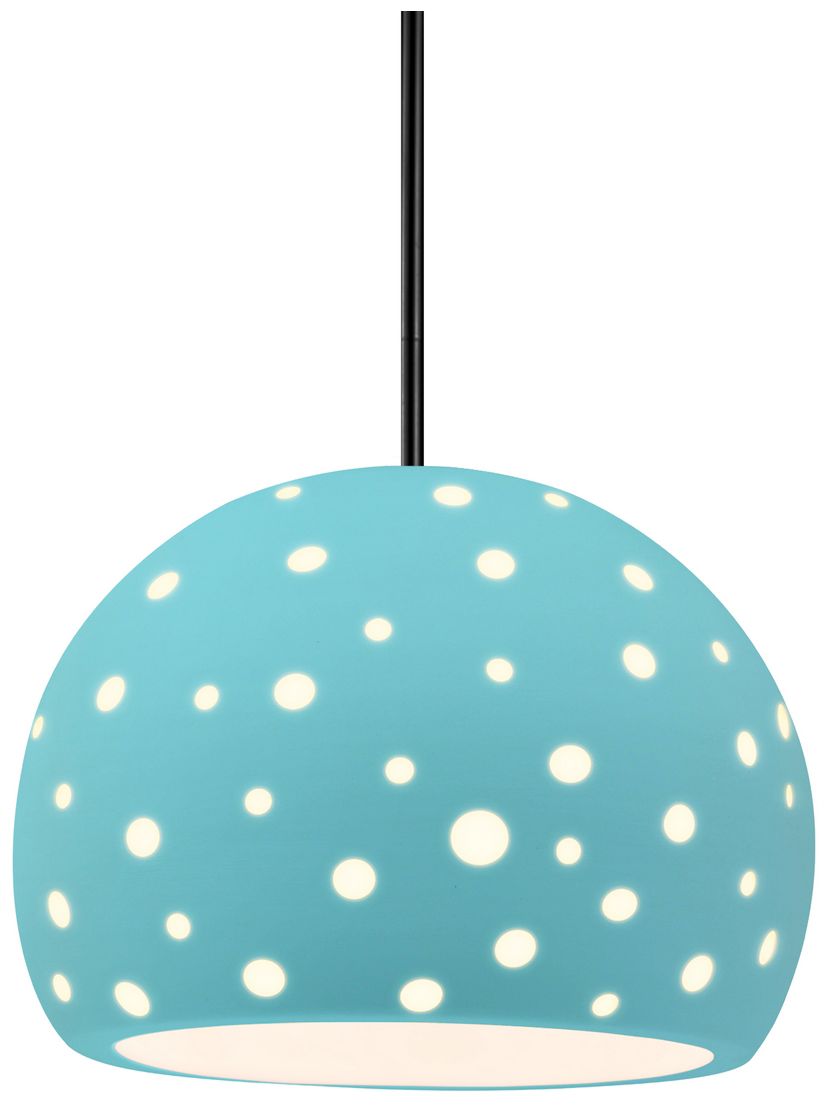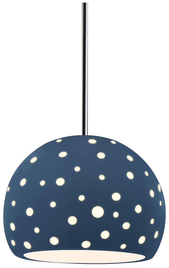 Perforated Globe 7"W Sky Blue, Polished Chrome LED Pendant - Rigid Stem