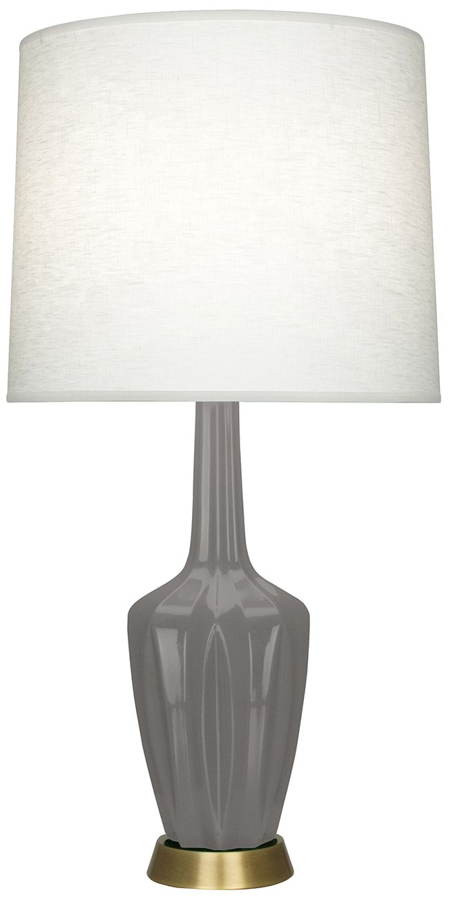 Small Emma 30" High Smokey Taupe Brass Accent Lamp with Off White Shade