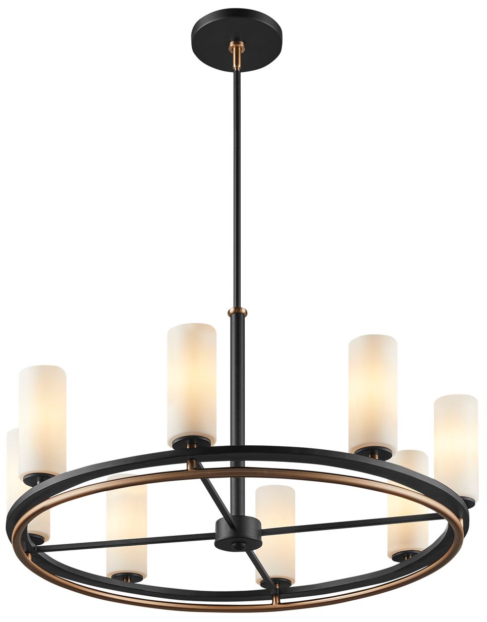Fusion Tilburg 32.5" Wide 8-Light Matte Black, Brass, Opal Chandelier