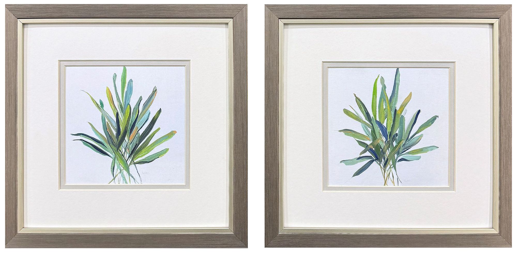 Tropical Leaves Square 11"W x 11"H Coastal Framed Art Set of 2