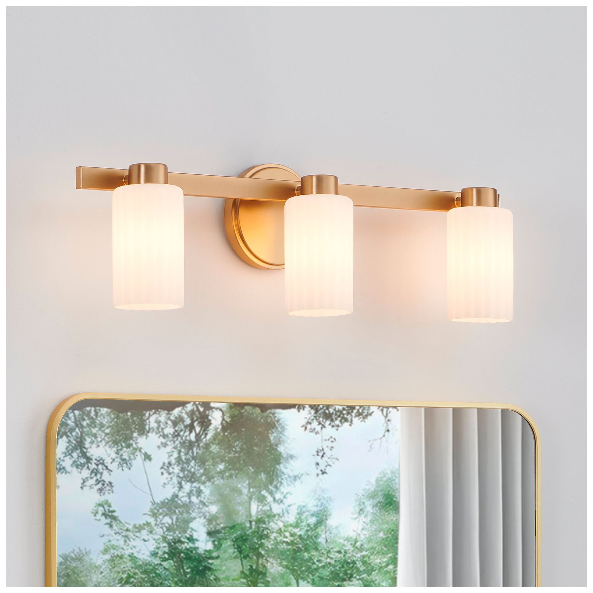 Thesis Bedminster 24" Champagne Gold Vanity Light, Etched Opal Glass Shades