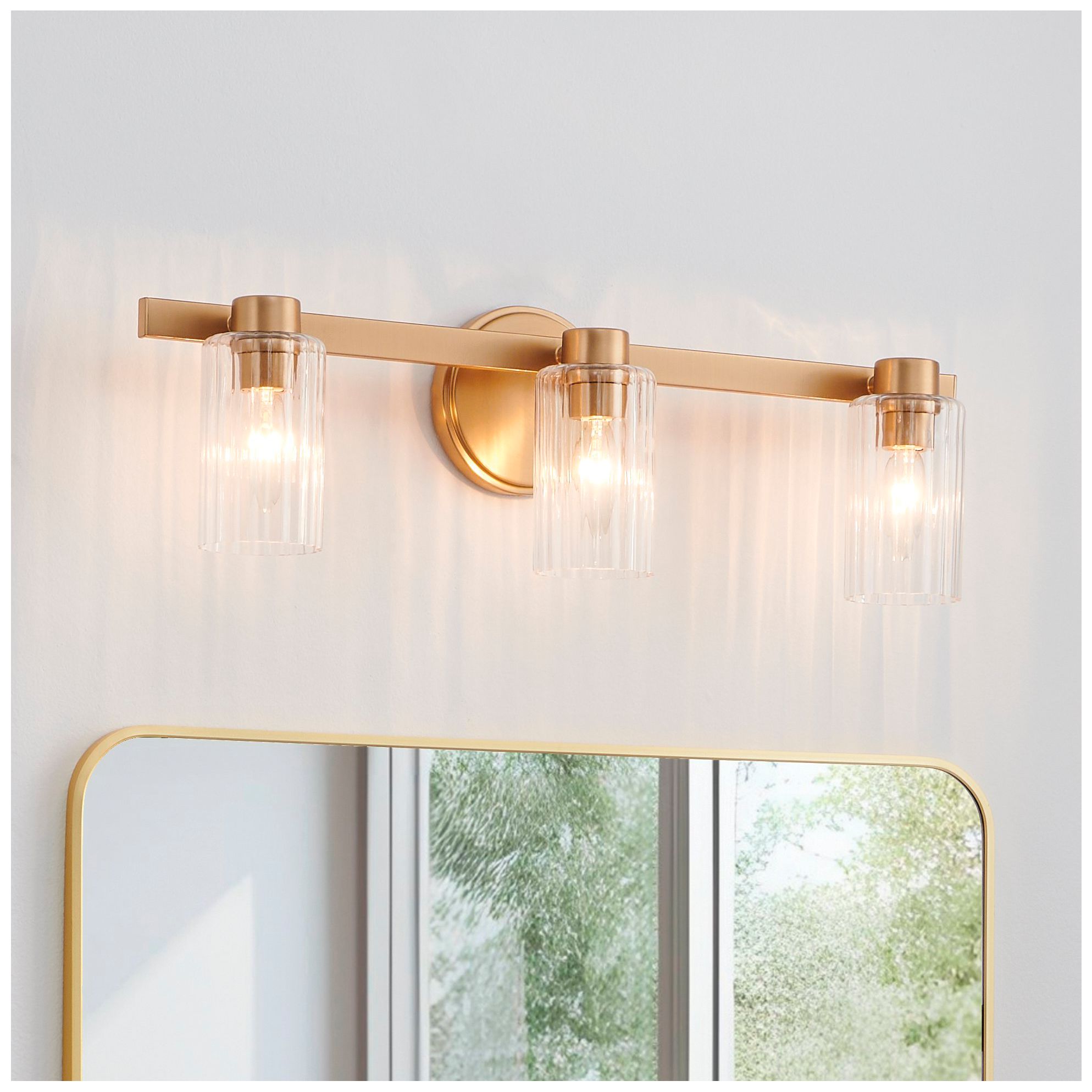 Thesis Bedminster 24" Champagne Gold Vanity Light, Clear Ribbed Glass