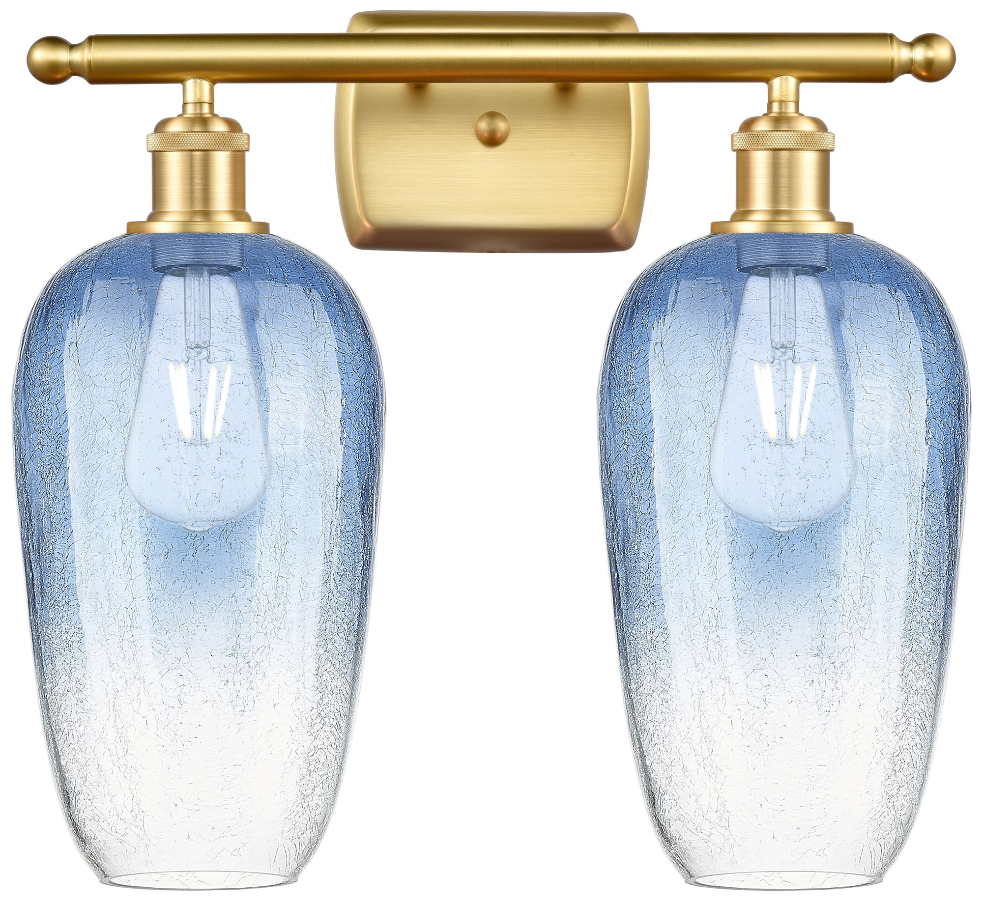 Edison Vaz 17" Wide 2 Light Antique Brass Bath Light w/ Princess Blue