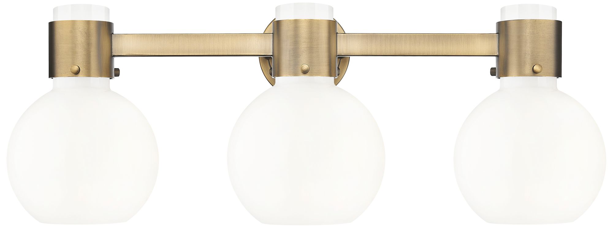 Lawton Sphere 24"W 3 Light Brass Wall Bath Light w/ Gloss White Shade