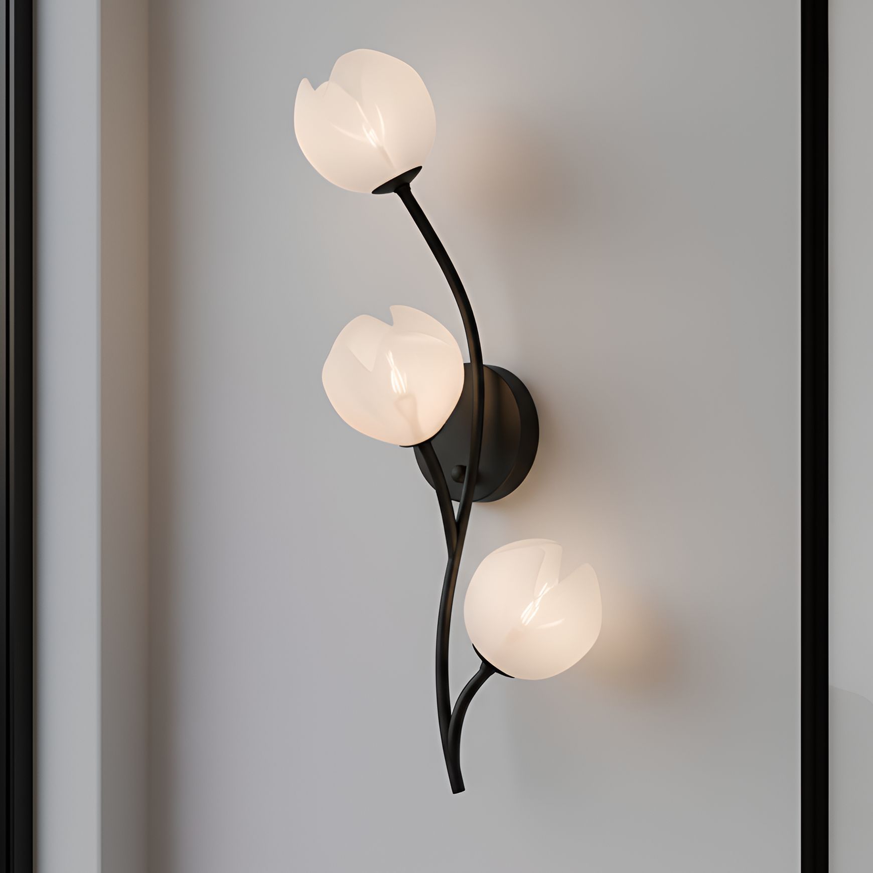 Thesis Dahlia 18 in. 3 Light Textured White Wall Sconce, Opal Glass Shades