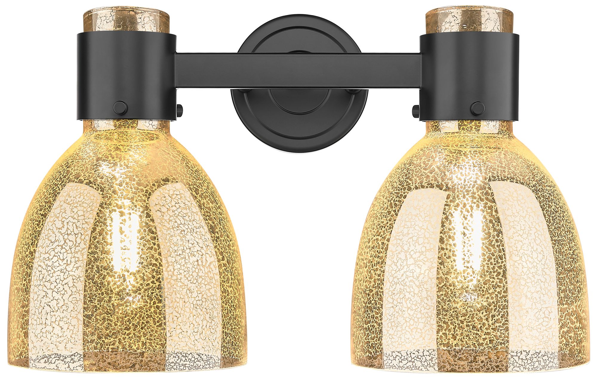 Small Edison Beacon 16" 2-Light Matte Black Bath Light w/ Mercury Shad