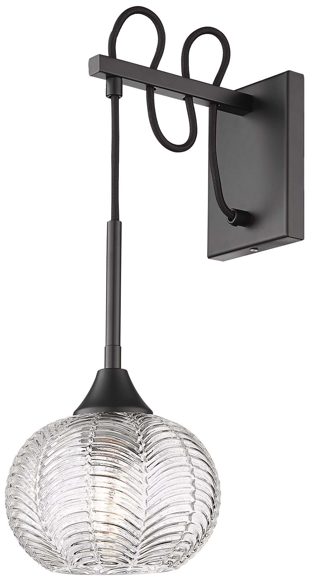Downtown Bridal Veil 11 "H Black Wall Sconce w/ White Swirl Shade