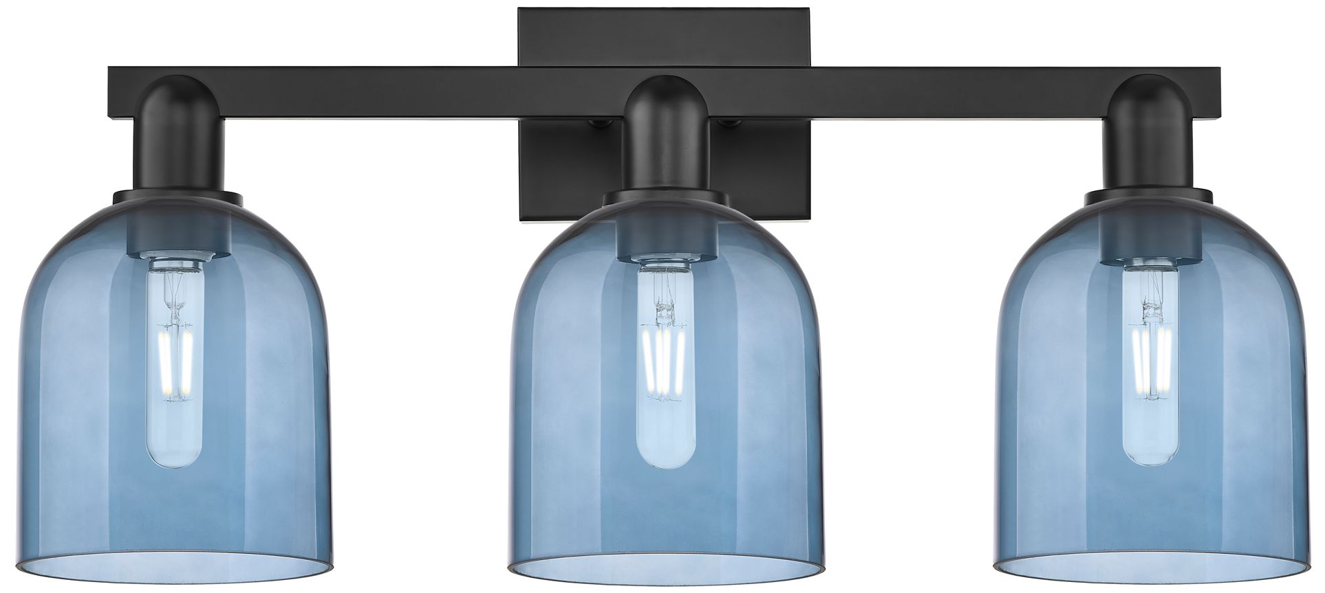 Arcadia Bella 25" Wide 3 Light Matte Black Bath Light With Blue Shade