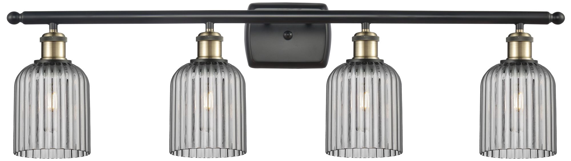 Ballston Bridal Veil 4 Light 35" Bath Vanity Black Brass Light Smoke Shade